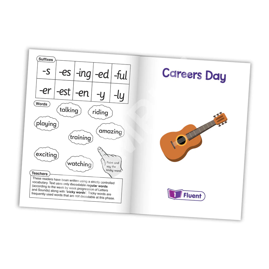 Spelling readers consolidates earlier taught phonics skills and tricky words. Set includes 12 fiction readers, each with colorful illustrations. Phase 6 reader have been written with a rich vocabulary including embedded words that contain suffixes.